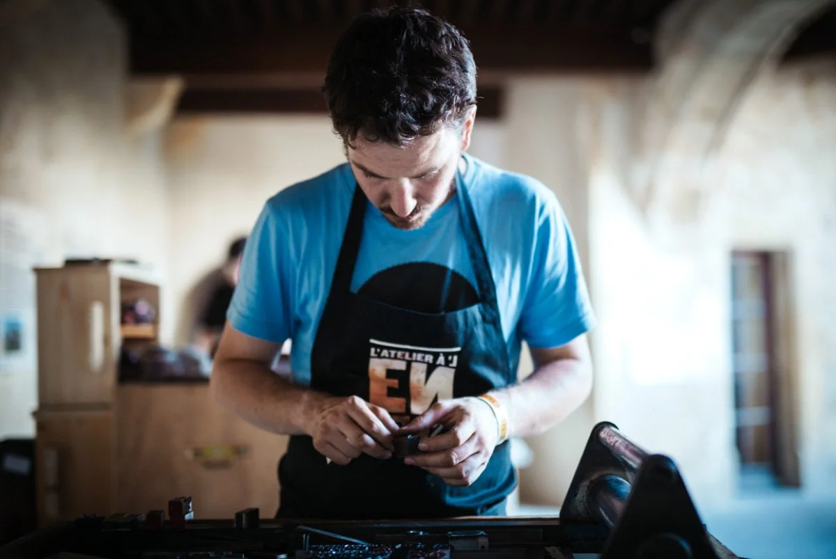 Atelier d’impression typographique fondé en 2012 par Guillaume Bétemps, l’Atelier à l’Envers conjugue ateliers de création collective, collaborations artistiques et impressions d’art.